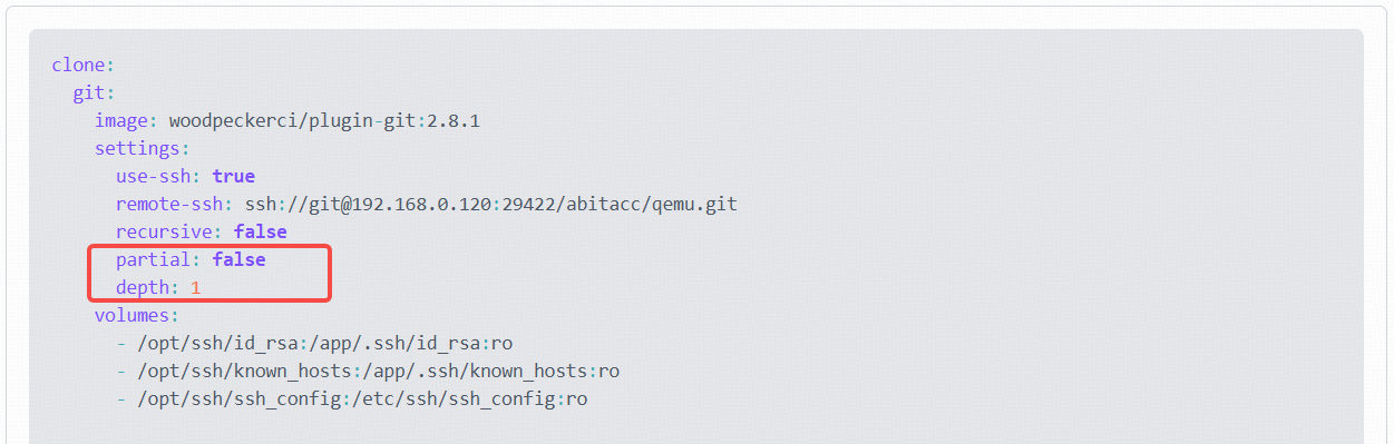 可以在 Woodpecker 的 clone 步骤中关掉 partial clone。