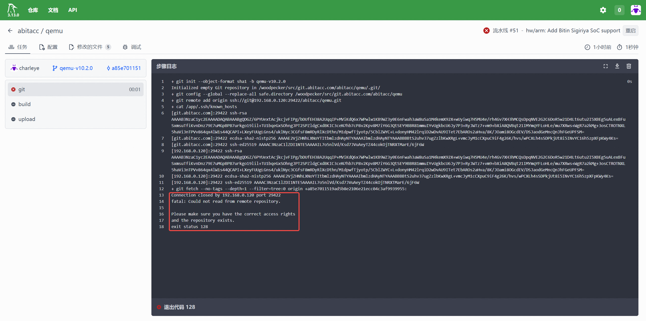 Woodpecker里面偶尔会出现git clone失败的现象(公钥已经添加到gitea里面)