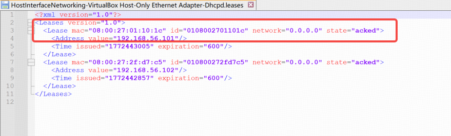 修改C:\Users\Administrator\.VirtualBox目录下的HostInterfaceNetworking-VirtualBox Host-Only Ethernet Adapter-Dhcpd.leases文件,就可以控制Guest里面连接到Host-Only网络的接口IP。