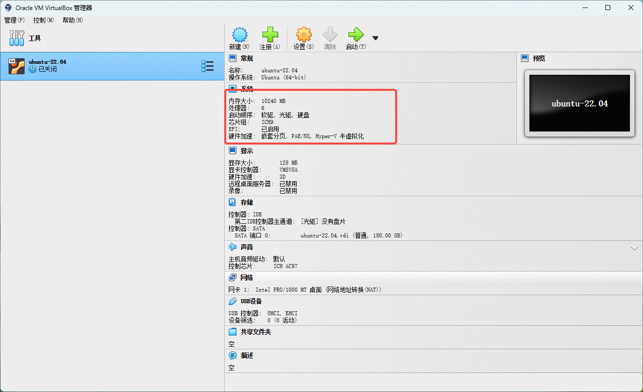 上图显示新建了一个Ubuntu-22.04 VM配置